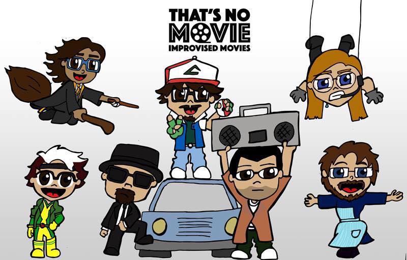 That’s No Movie performs high-energy, fast-paced improvised movies, using just their minds and bodies to create everything you’d see on a movie screen — the characters, props, sets, special effects, musical soundtracks, camera angles and more. They have studied and perfected dozens of movie and TV genres, including space operas, slasher flicks, Disney Princess animated features, super-hero blockbusters, Hitchcockian thrillers, Lifetime movies, Rankin Bass holiday Claymation specials, Nicholas Sparks tearjerkers and Hanna Barbera teenage detective cartoons.